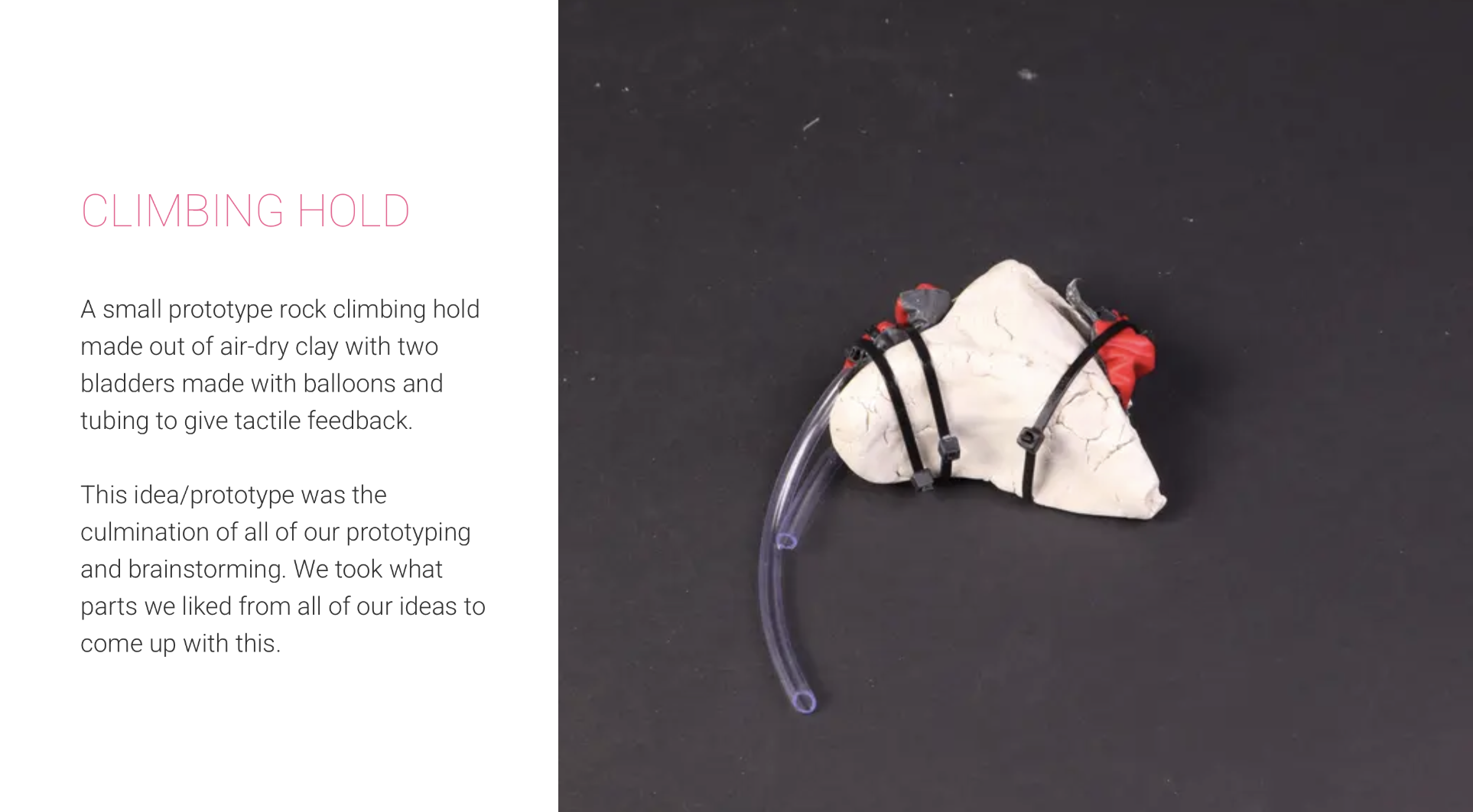 Another team is designing a climbing wall specifically for blind users, using soft robotics to provide tactile guidance that helps climbers navigate their next move. Through gentle physical cues rather than visual signals, the wall communicates direction and orientation—reimagining how accessible movement and play can be designed.